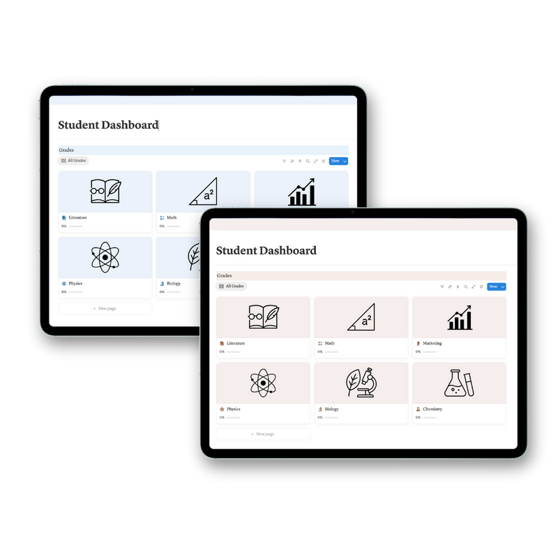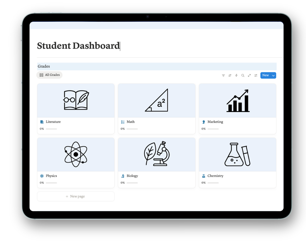 A soothing blue workspace to keep your studies clear, focused, and organized.